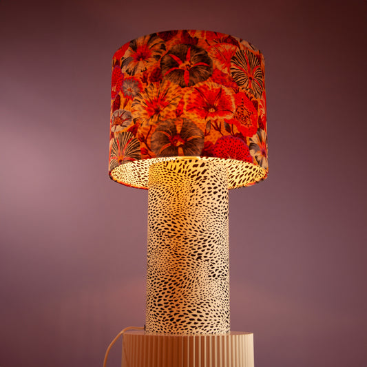 Tischleuchte Hibiskusblumen – Innen Musterstoff Leopard schwarz weiß