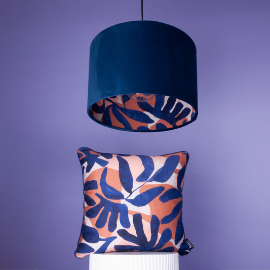 Lampenschirm Samt dunkelblau, Innenstoff Baumwollsatin Abstraktes Muster