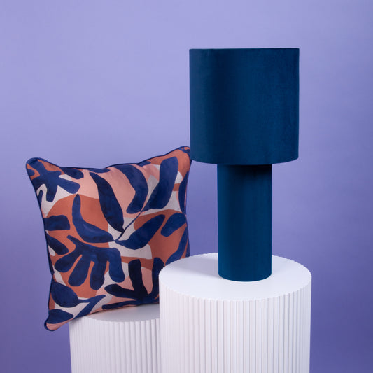 Tischleuchte Sockel Samt Blau – Innen Musterstoff Abstrakt