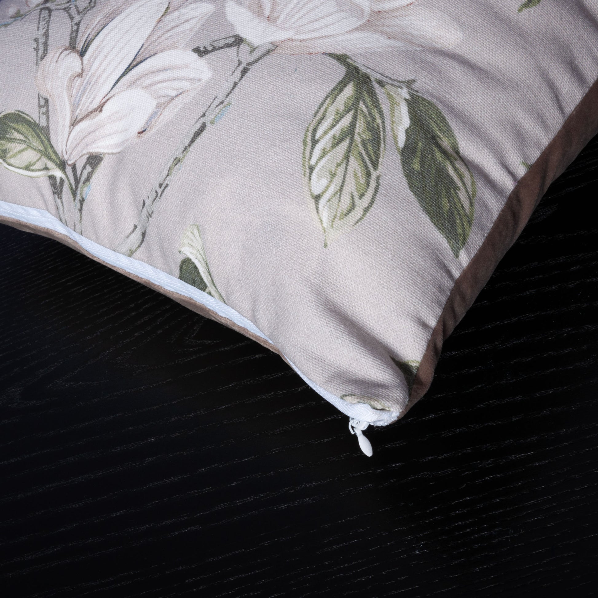Dekokissen 40 x 40 cm Stoff Baumwolle Floral Beige weiße Blumen Rückseite Samt Beige