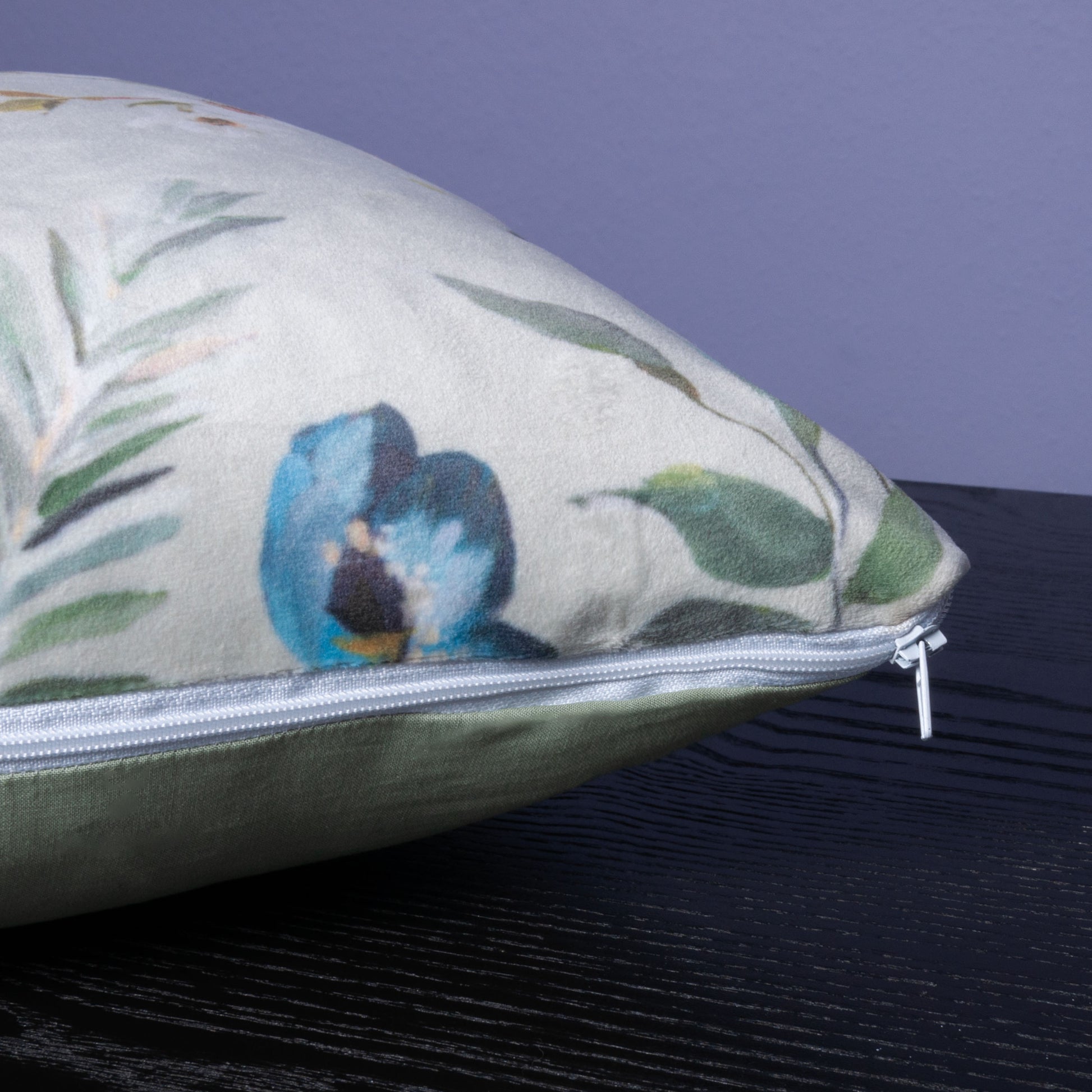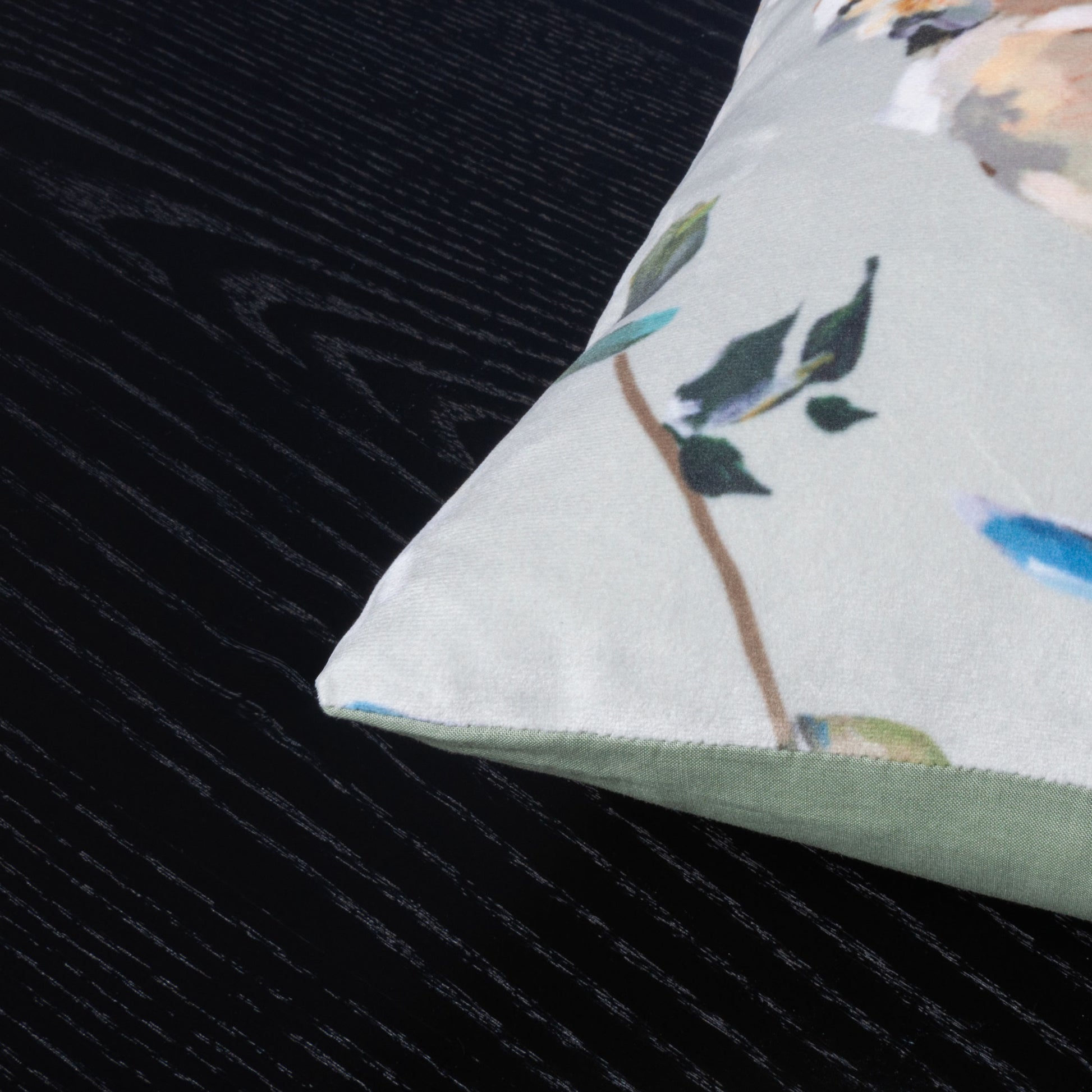 Dekokissen 40 x 40 cm Stoff Samt Blaumeisen Blumen Rückseite Baumwollstoff Mint Grün