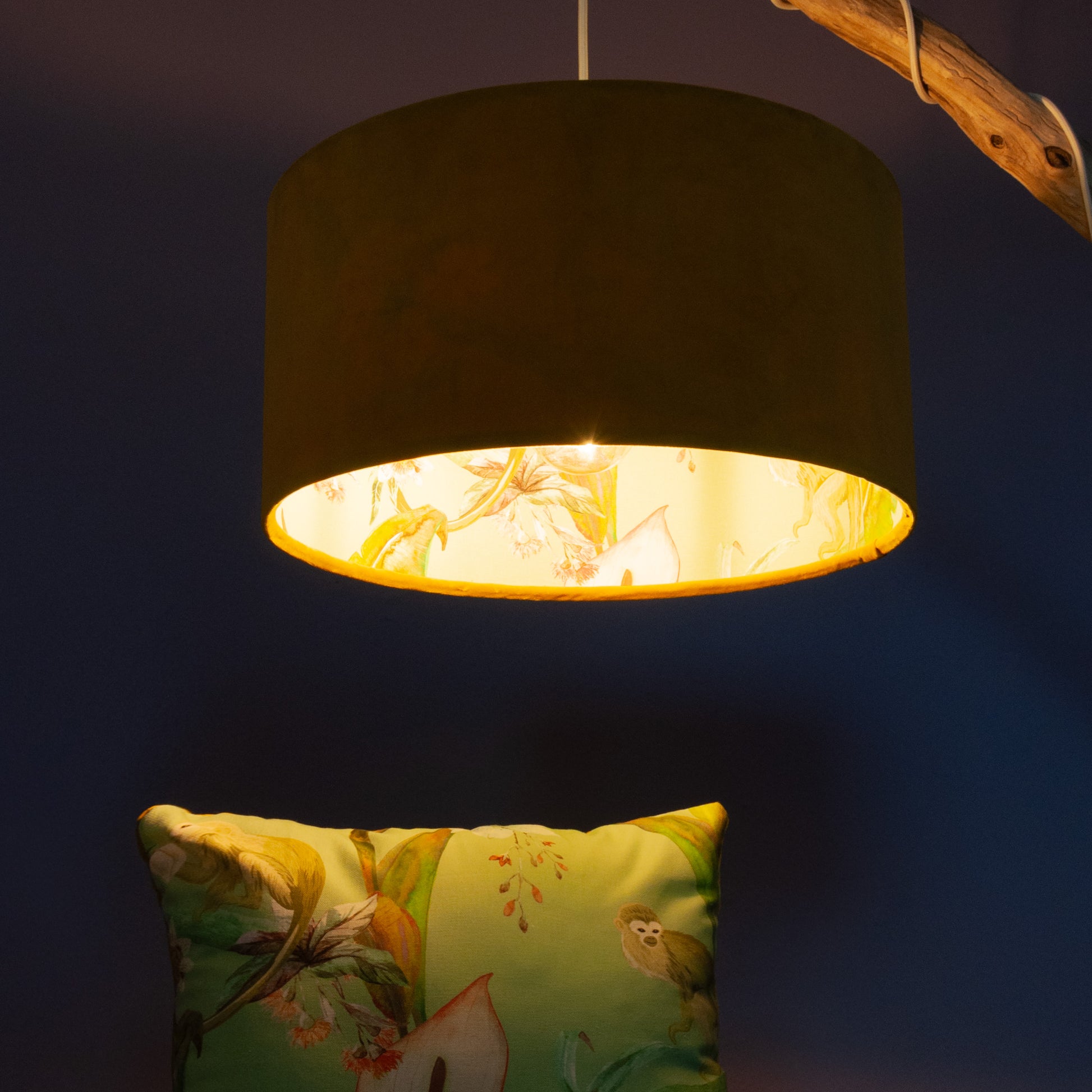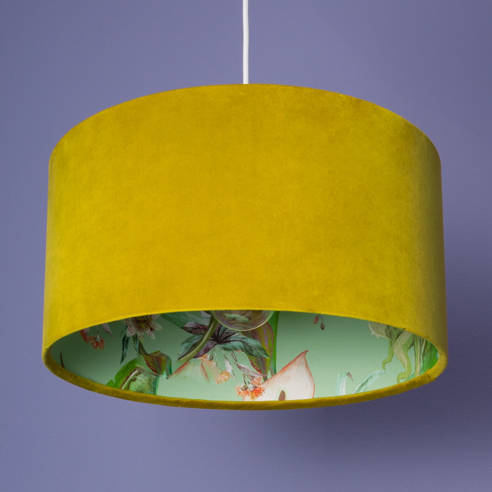 Lampenschirm Samt Senfgelb – Tropisches Muster Innen – Stofflampenschirm für Hänge- & Stehlampen