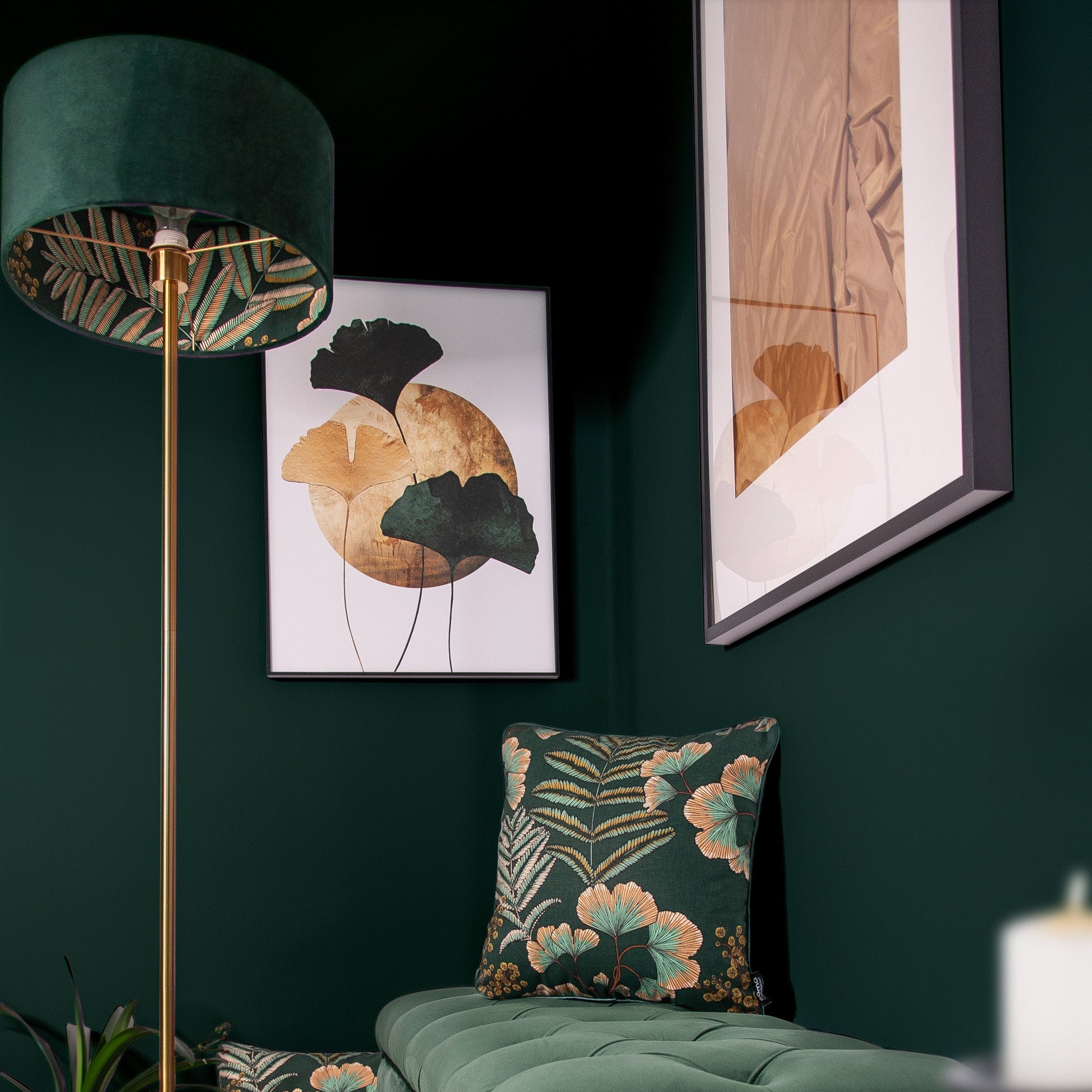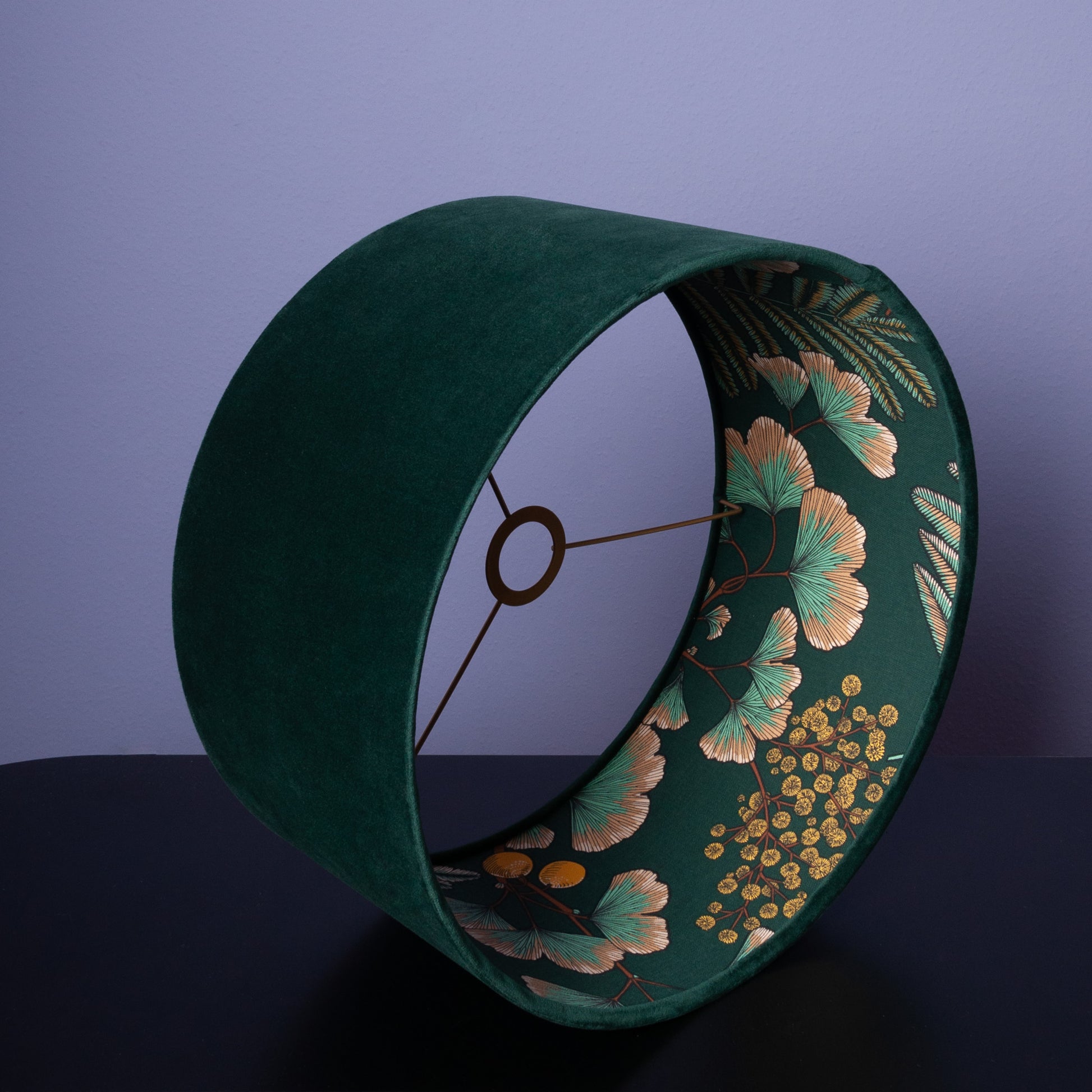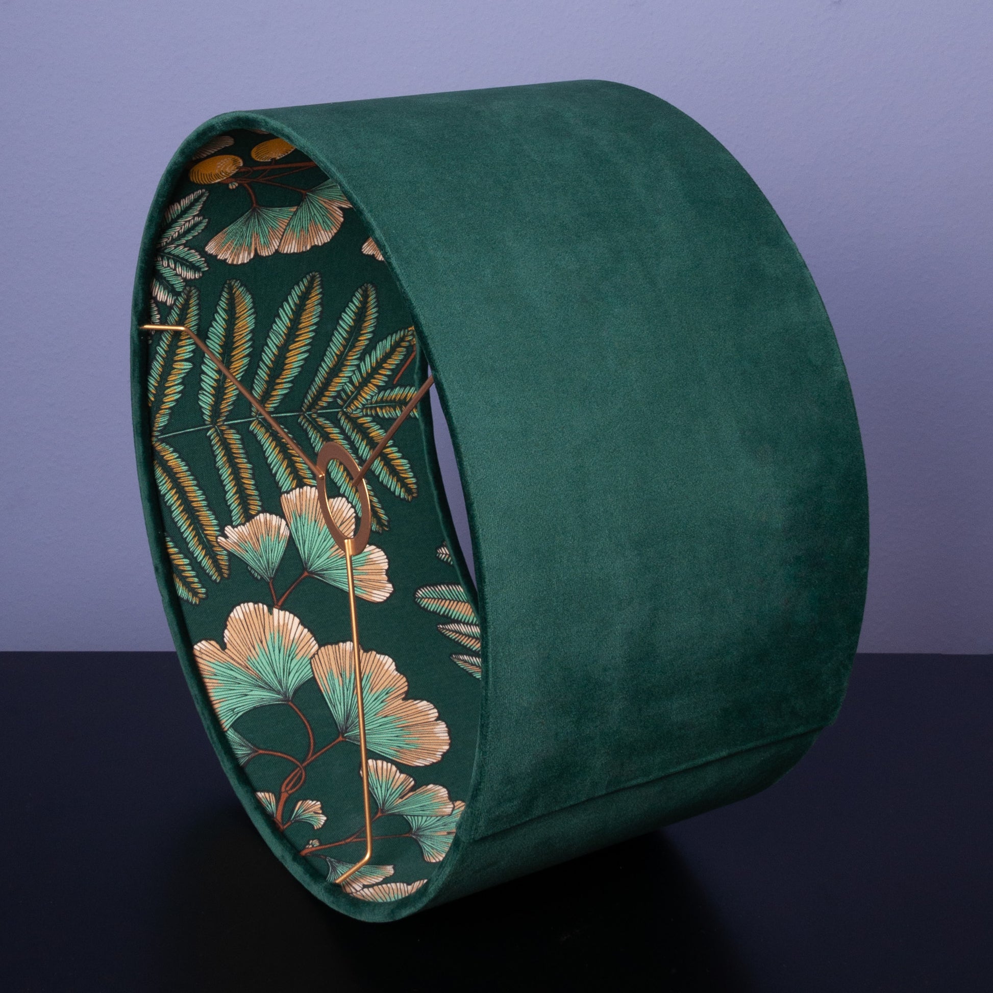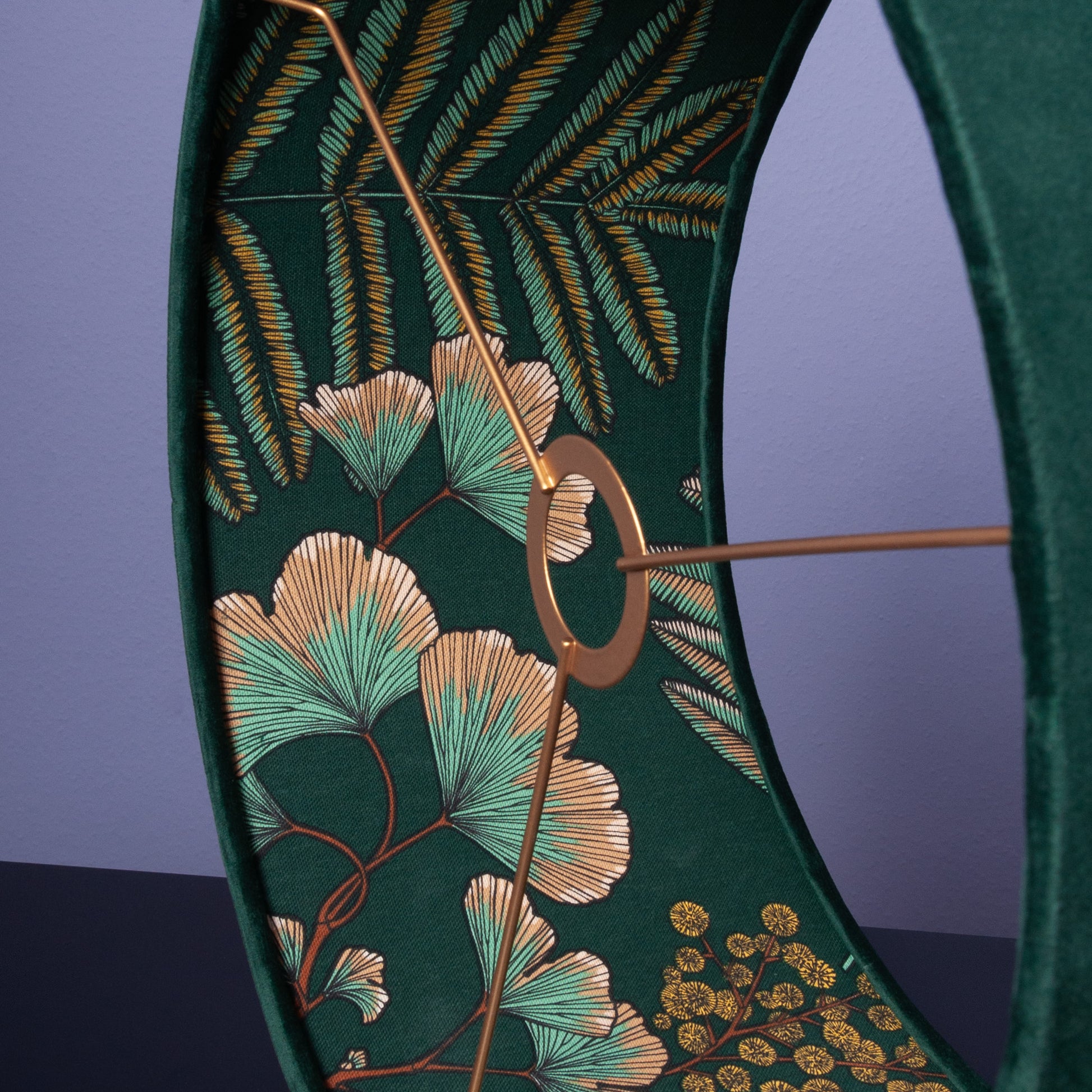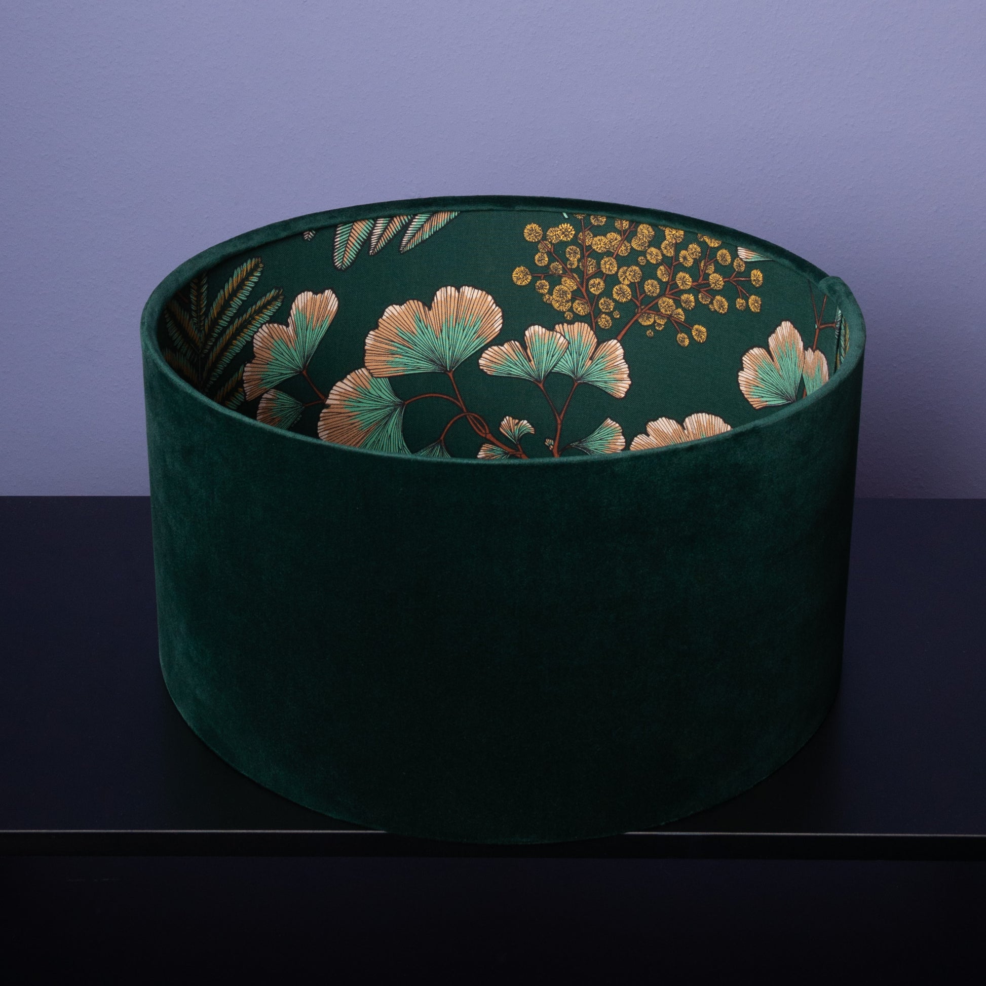 Lampenschirm Samt Dunkelgrün – Ginkgo-Blatt-Muster – Bestseller Stofflampenschirm für Hänge- & Stehlampen