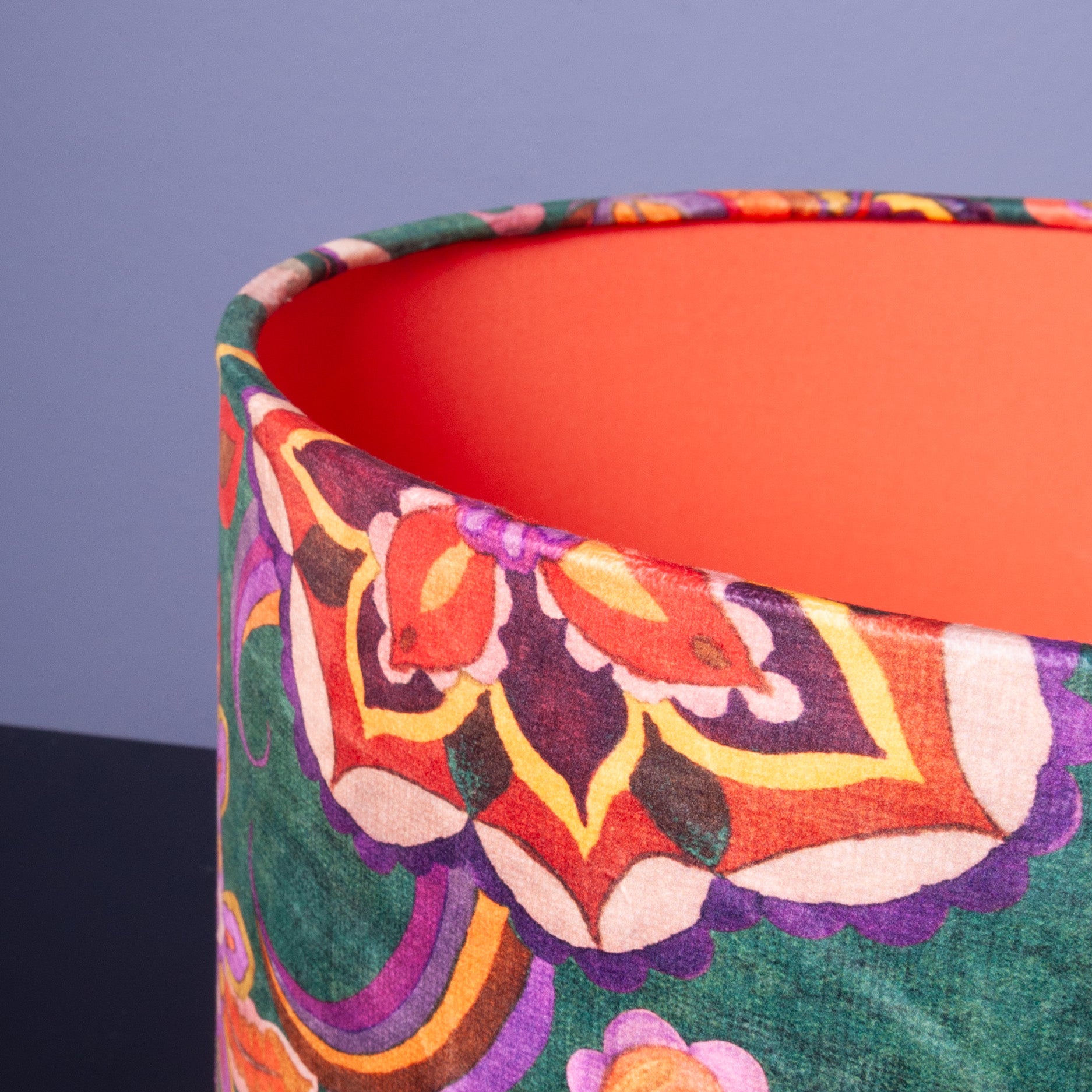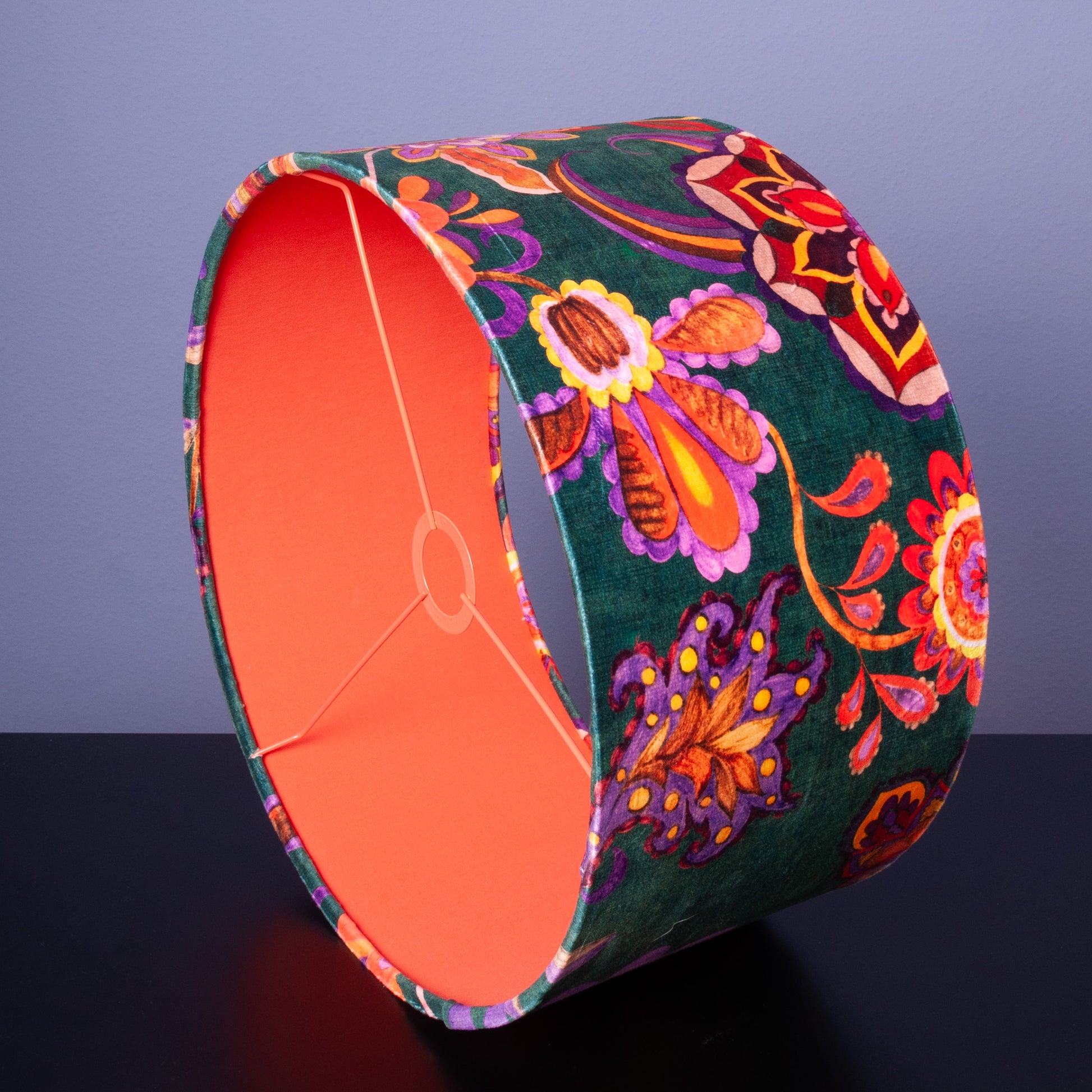 Lampenschirm Samt Petrol – Florales Muster Orange & Lila – Stofflampenschirm für Hänge- und Stehlampen