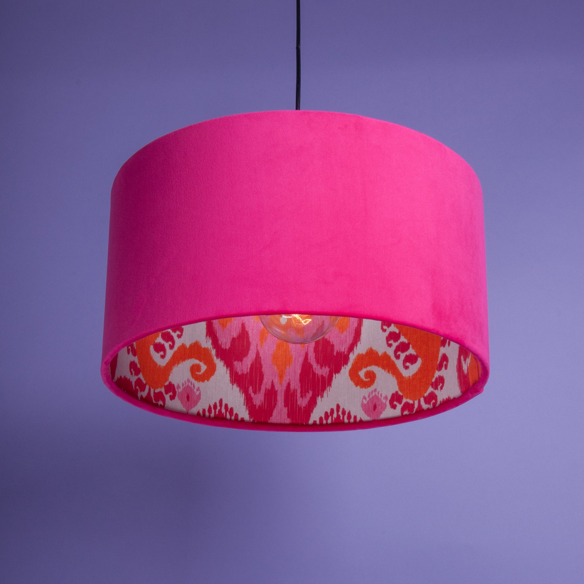 Lampenschirm Samt Pink, Innenstoff Baumwolle Ikat