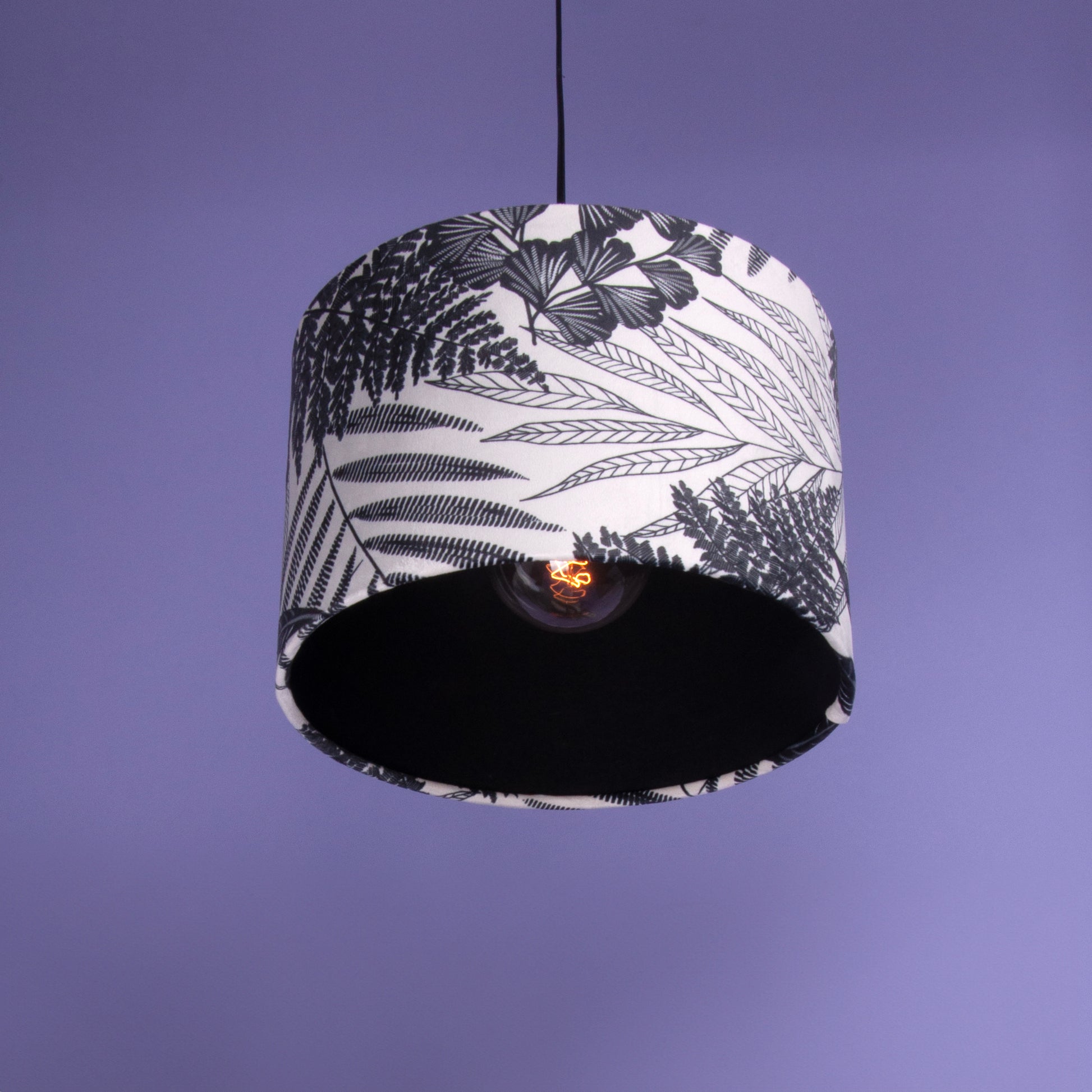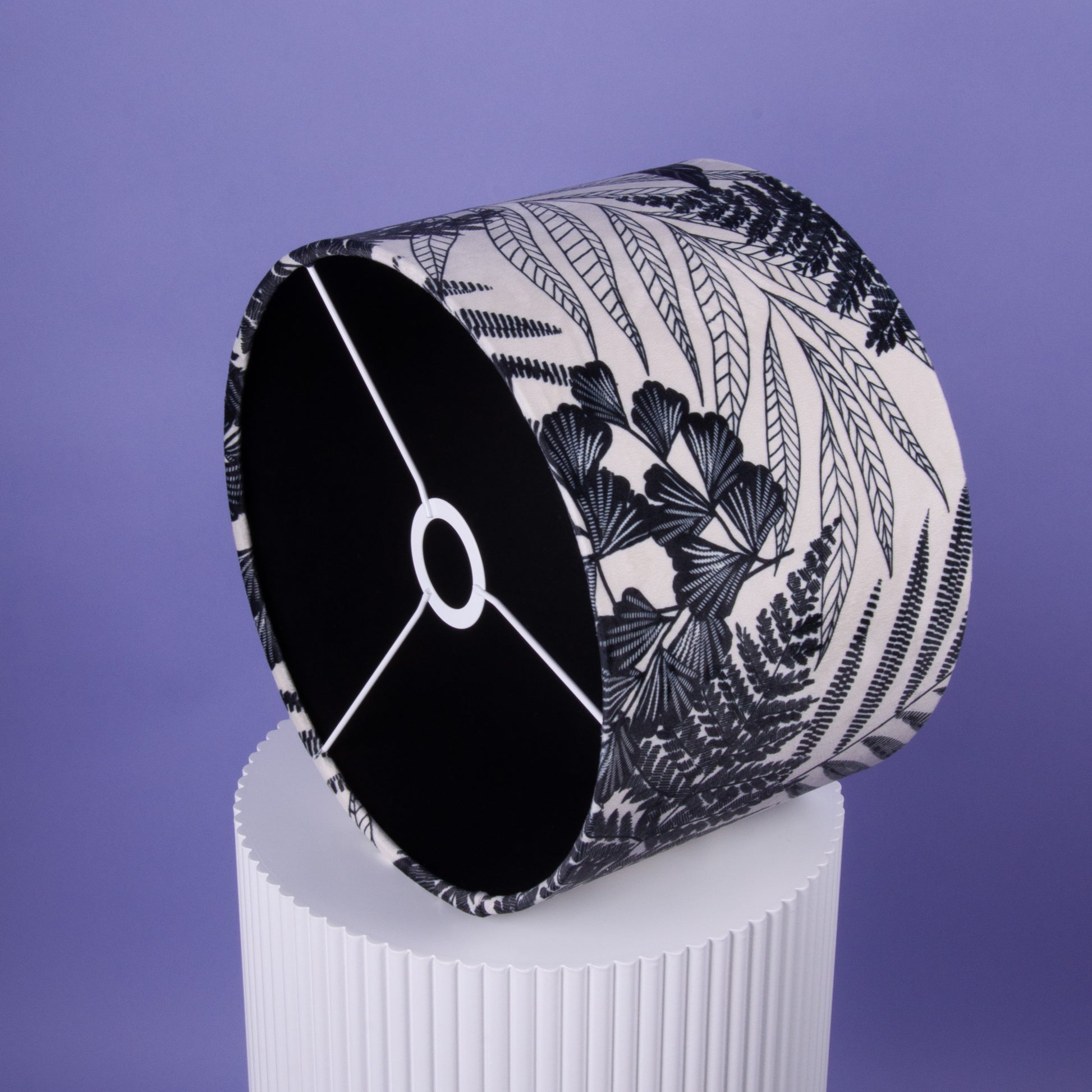 Lampenschirm Samt Schwarzweiß Floral Blätter, Innenstoff Baumwolle Schwarz