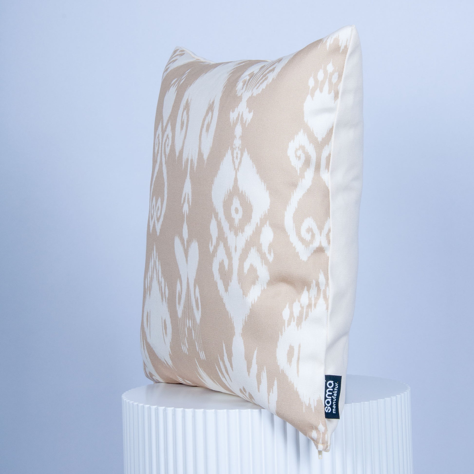 Outdoor Dekokissen 40 x 40 cm Ikat Beige, Rückseite cremeweiß
