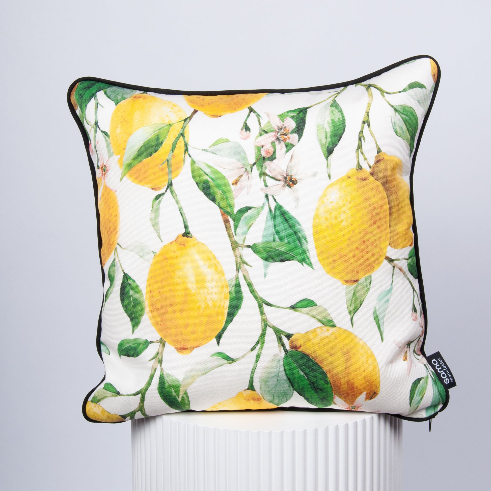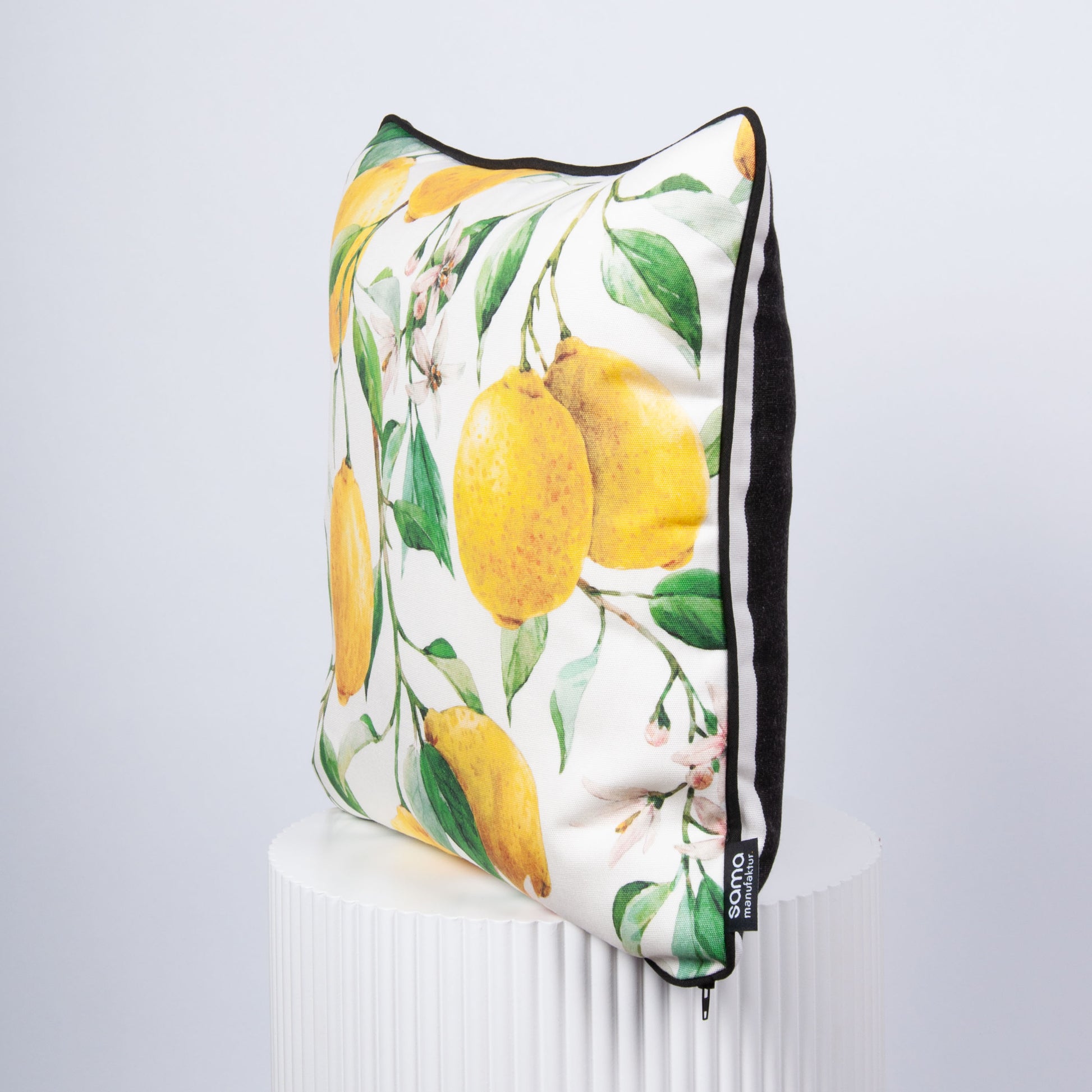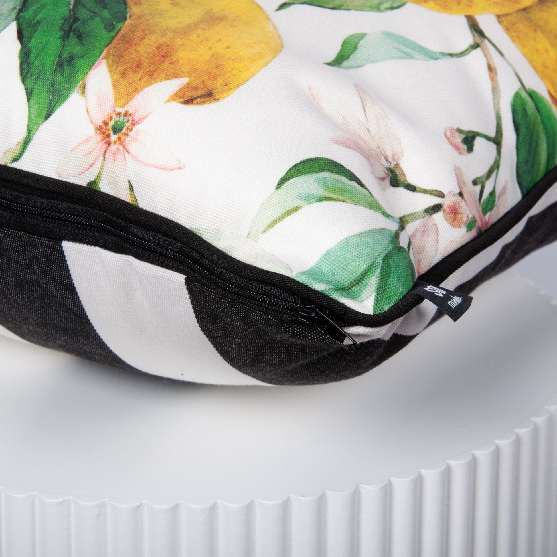 Outdoor Dekokissen 40 x 40 cm Zitronen, Rückseite schwarz-weiß gestreift