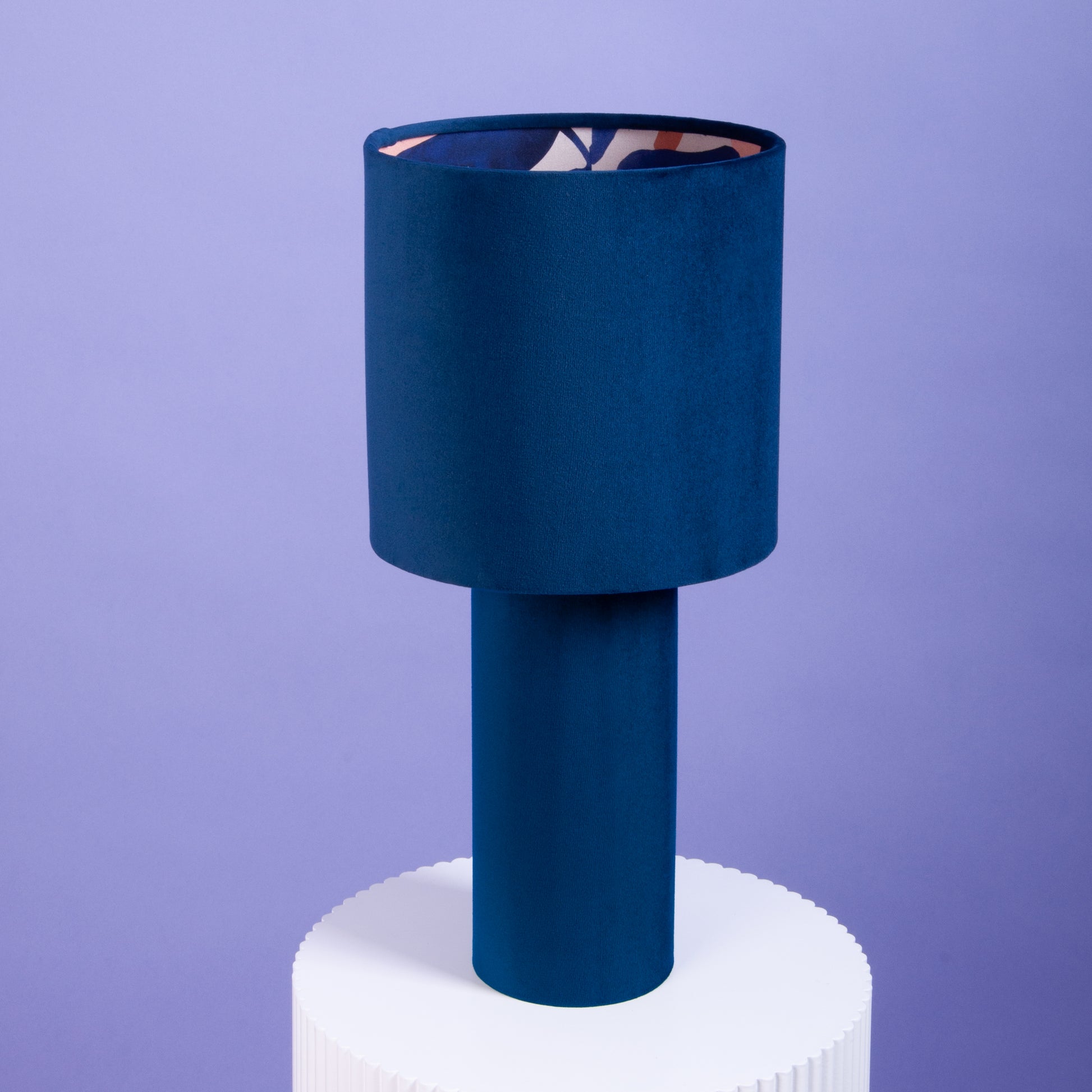 Tischleuchte Sockel Samt Blau – Innen Musterstoff Abstrakt